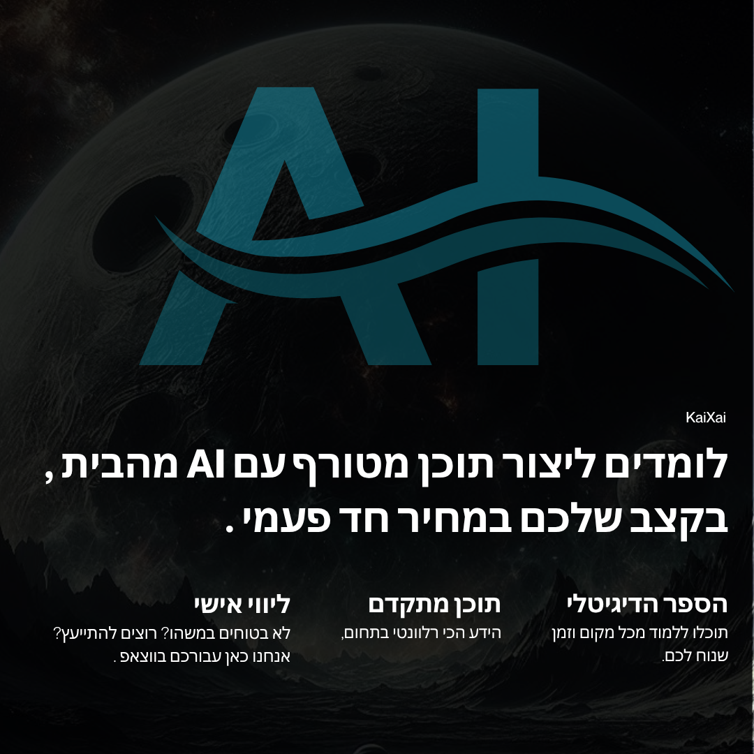 המטרה שלי היא שתבין, תשלוט, ותדע להוציא מהכוח אל הפועל ולהפוך את הAI לנכס אמיתי בשבילך: לעבודה, לעסק, ללימודים או לפרנסה חדשה בעולם שקופץ קדימה.